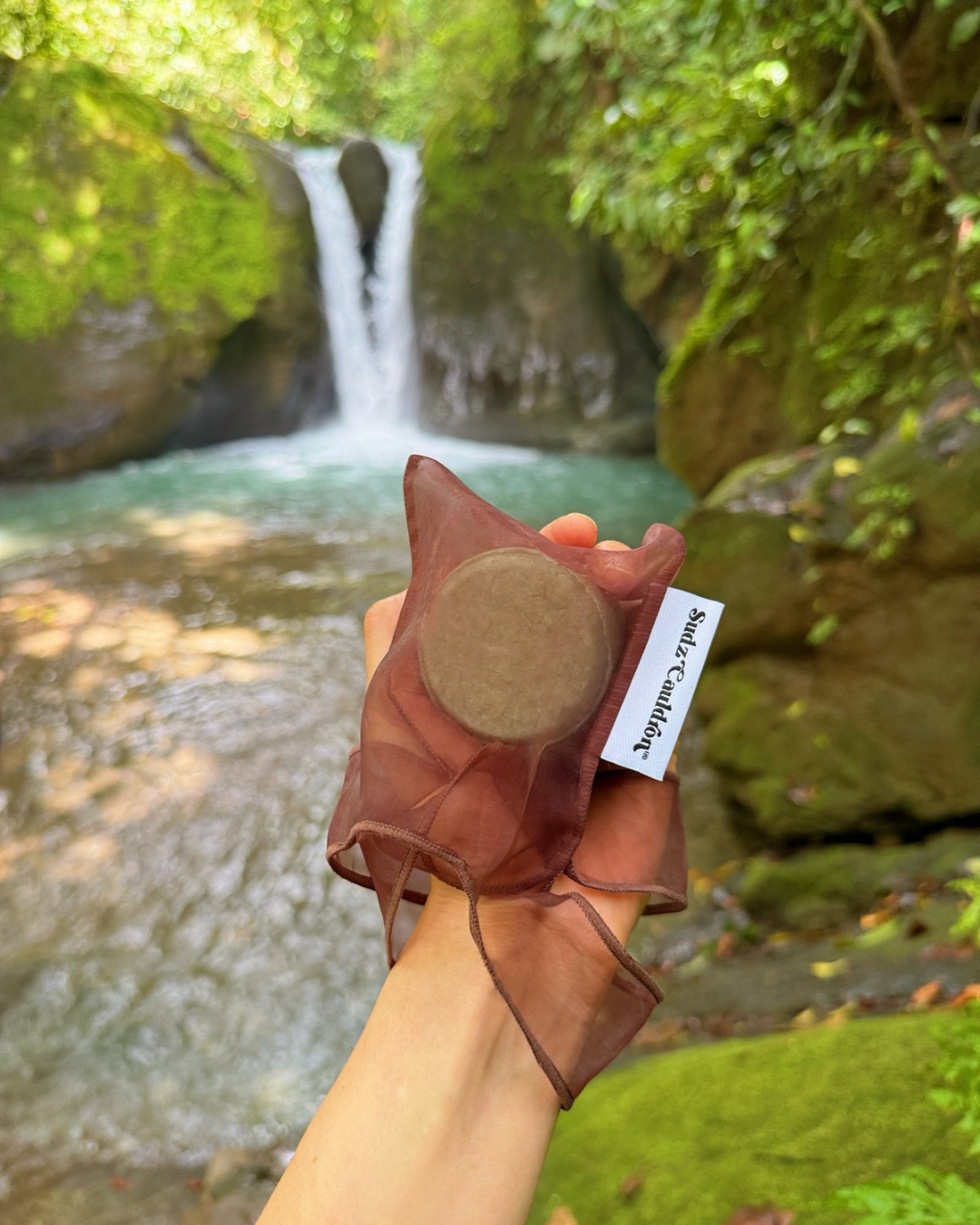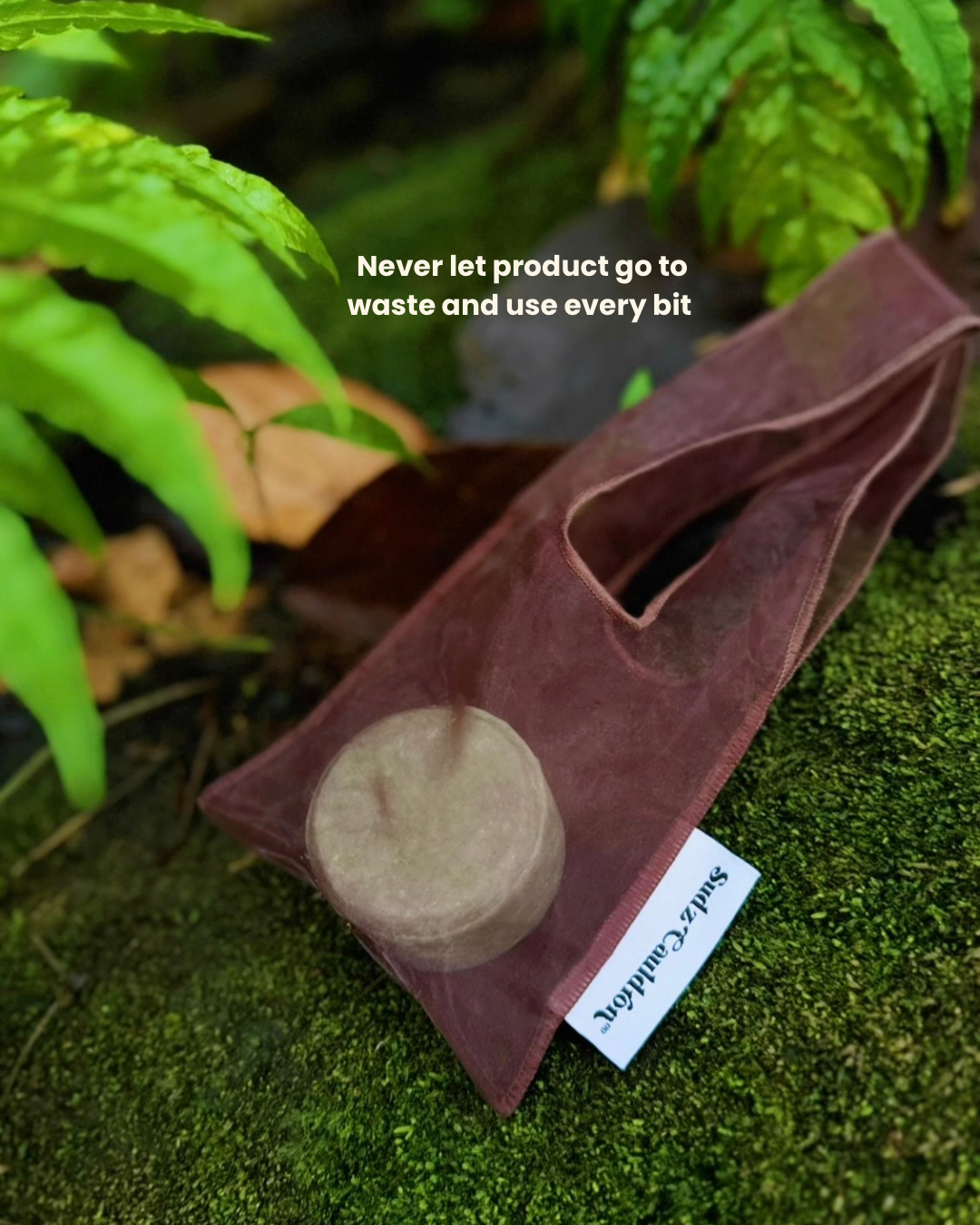 Our Chiffon Bar Bag is made from ultra-fine recycled nylon mesh. It’s lightweight, durable, and designed to help your bar dry quickly between uses—preserving every bit and minimizing waste.