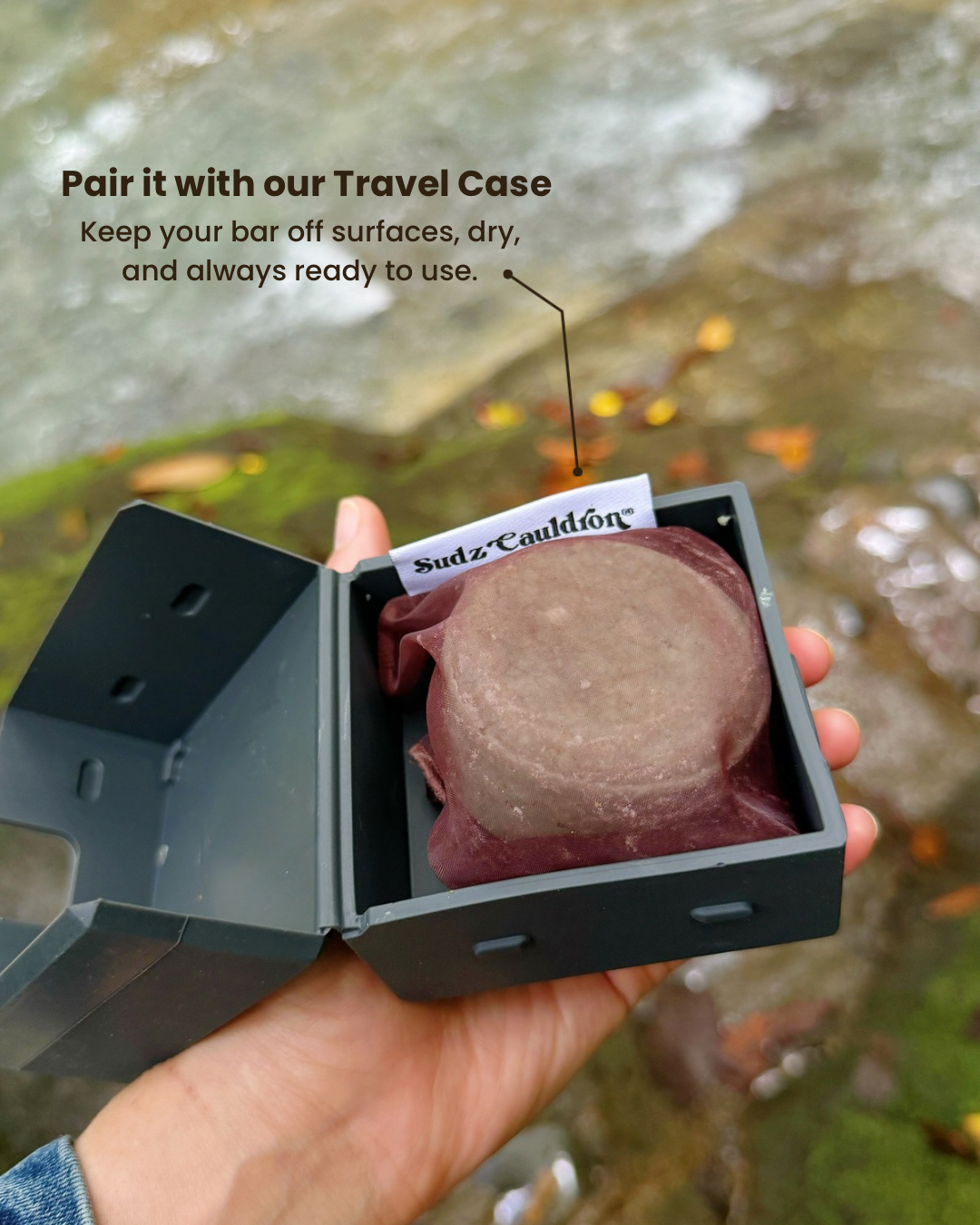 Pair it with our Travel Case for effortless on-the-go convenience. Our Travel Case fits a full-size bar and the Bar Bag, while the handles make it easy to hang in any shower, keeping your bar off surfaces, dry, and always ready to use.