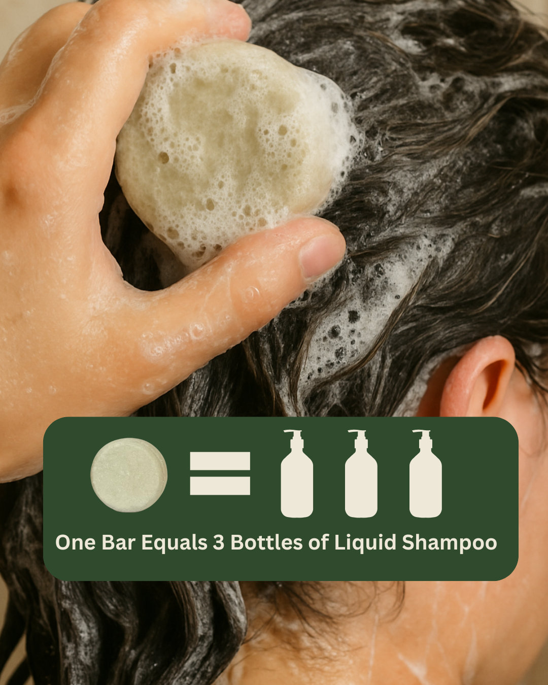 - Activate the bar: Wet your hair and glide the bar directly onto your scalp, or lather it between your hands to release the rich, creamy foam.