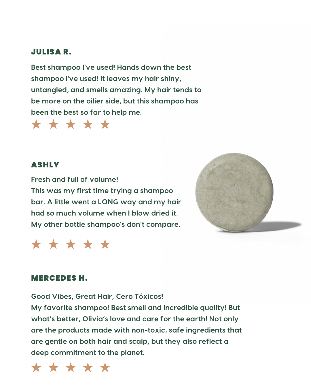 It’s just like your traditional liquid shampoo—just without the plastic bottle, water, and fillers. Our bars are concentrated, soap-free formulas made with gentle plant-based surfactants (the molecules that create a cleansing sudz) and nutrient-rich ingredients to nourish your scalp, without the waste.